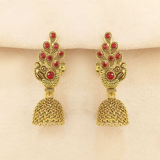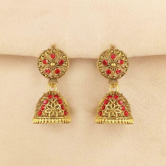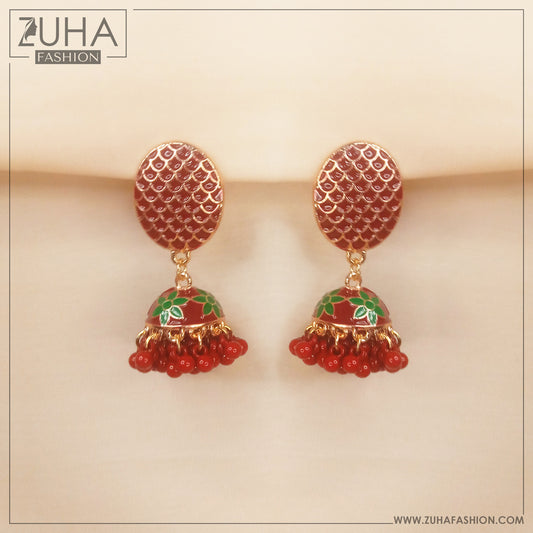 Ethnic Red Jhumka Style Earrings 0248