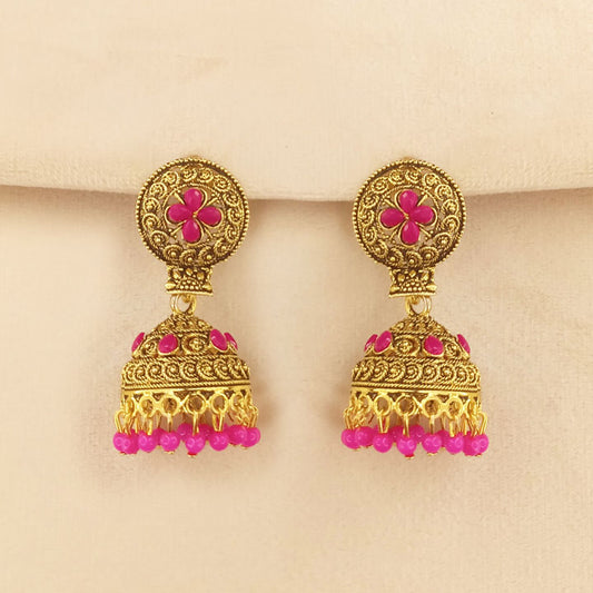 Sold outPink Golden Jhumka Earrings 0651