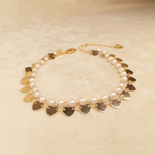 Pearl Hearts Double Chain Anklet 0621