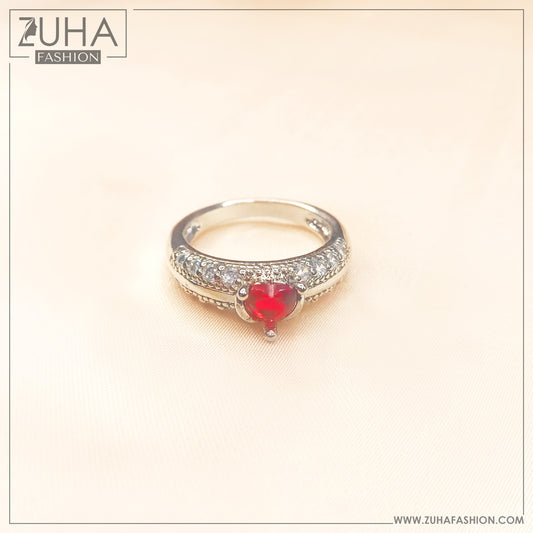 Solitaire Red Heart Silver Ring 0300