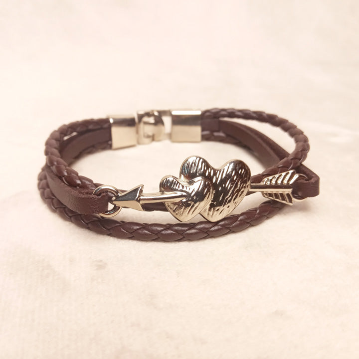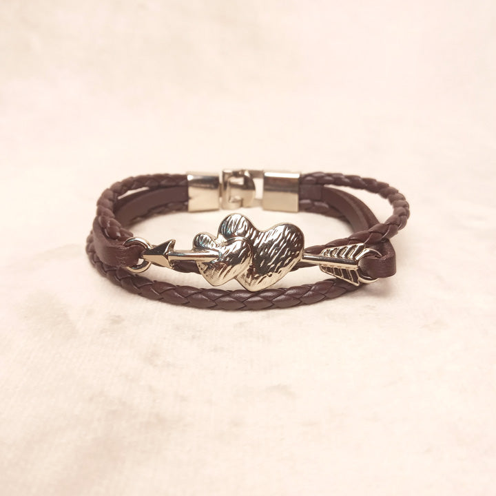 Brown Leather Band Heart Bracelet 0701