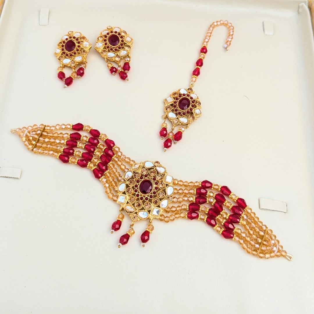 Buy this  Champagne Red Bridal Choker Set 0110  with traditional touch and a highly glamorous look. Perfect for your big day.