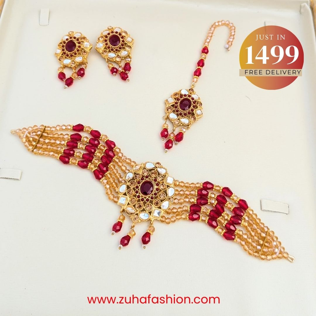 Buy this  Champagne Red Bridal Choker Set 0110  with traditional touch and a highly glamorous look. Perfect for your big day.