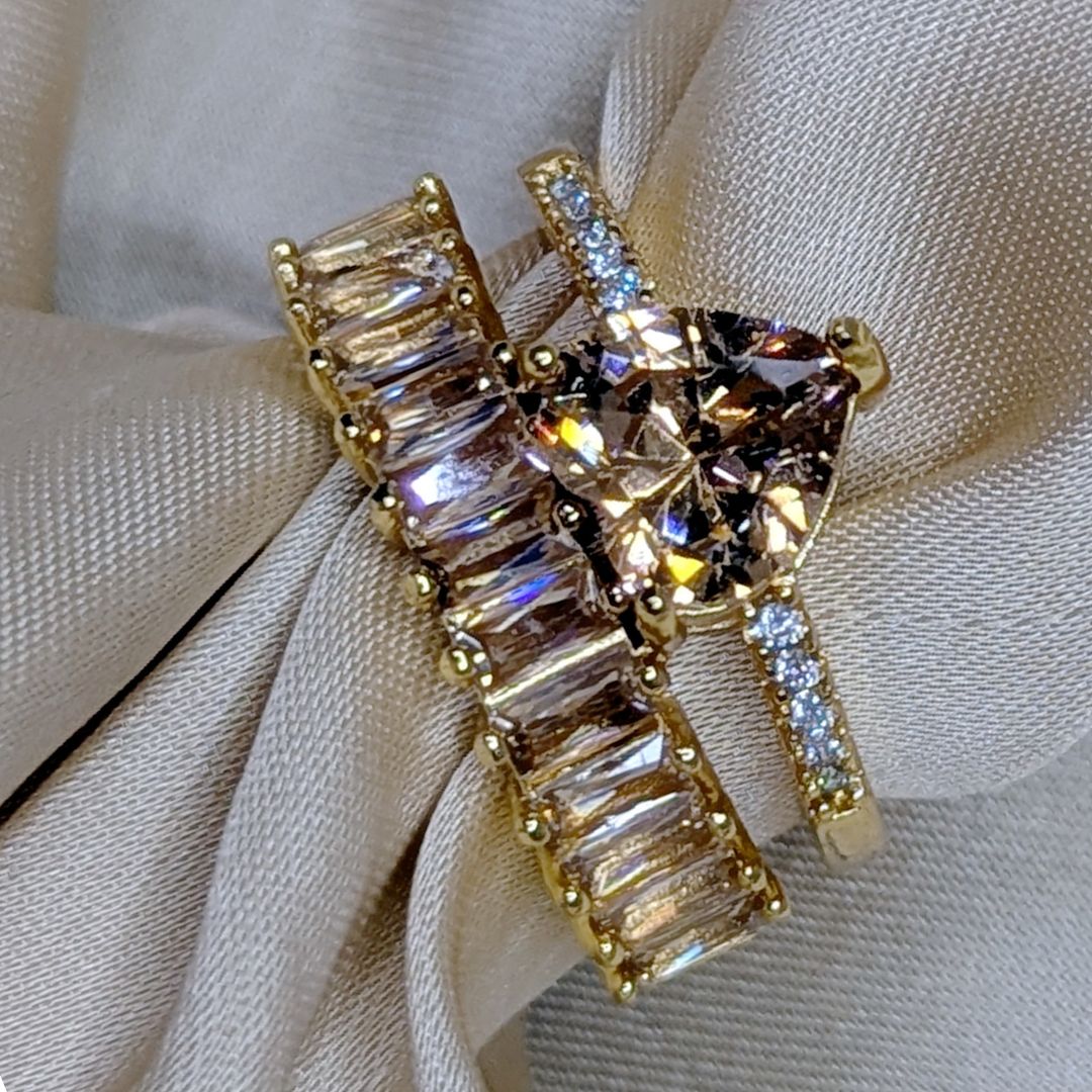 Double Heart Champage Adjustable Golden Ring 4136