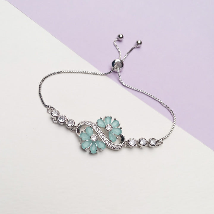 Sea Green Silver Chain Bracelet for Girls 0953
