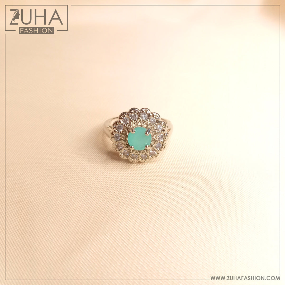 Sea Green Stone Silver Ring 0116
