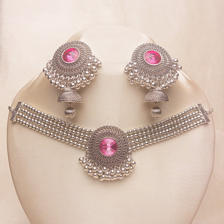 Silver Pink Bridal Choker Set 0715